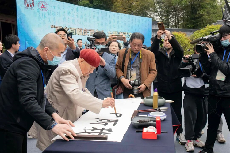 同时,“百名百幅庆百年”书艺交流和曲水流觞活动也相继展开。