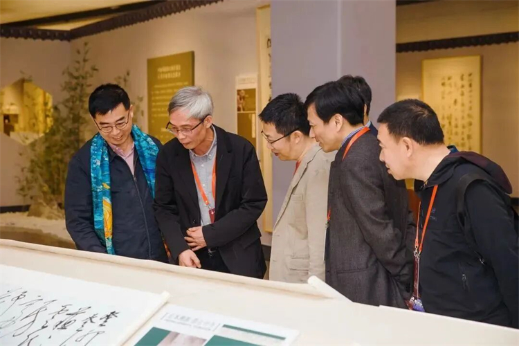 领导、嘉宾在工作人员引领下参观《“我所思兮”——沈定庵书法作品纪念展》和《“正本溯源 借古开今”——中国书协第八届专委会行、草书委员作品展》。