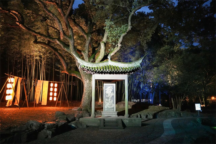 兰亭景区历史首次开放夜公园,在兰亭古迹区、天章寺等地布置了灯光,七彩灯光与崇山峻岭、清流急湍、茂林修竹的环境相映,形成独特的意境。国庆假期10月1日至10月6日,游客可欣赏清雅、幽寂的兰亭夜景,体验兰亭郊外园林独特的浪漫与温馨,享受夜兰亭书香、墨香和山水自然之美。