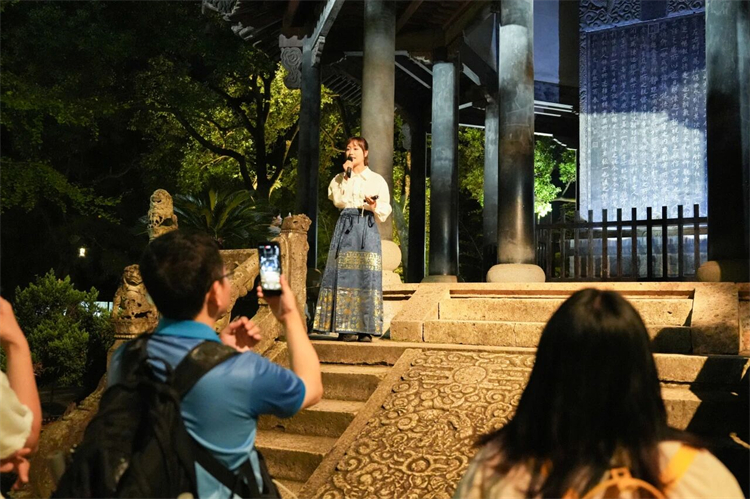 国庆假期已经开始,兰亭景区秋高气爽、景色宜人,各地游客纷至沓来,节假日期间,丰富的景区活动结合独特的夜游场景,让游客的体验更加多元。