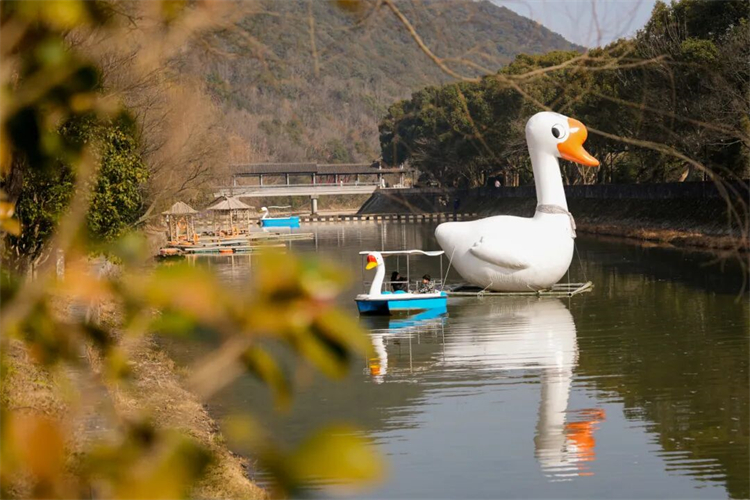 在兰亭江上划竹筏,享受山水间慢节奏的惬意,穿插在水杉林和乐池小舟上古风妆造、也可在兰渚山居品一杯冬日暖茶,感受休闲时光。