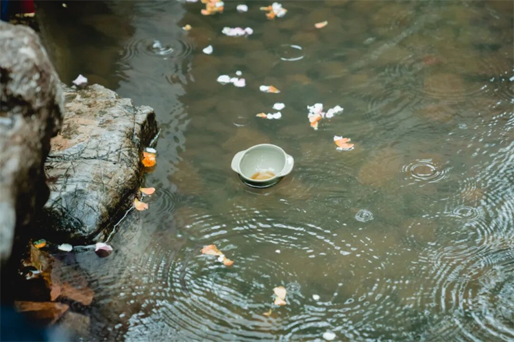 效仿先贤,列坐曲水两旁,在曲水上游放置觞杯,任其顺流而下,饮酒赋诗,彼此相乐。