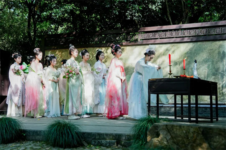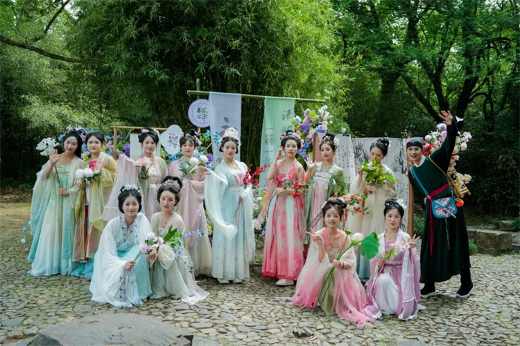 十二花神分时段在兰亭景区巡游,可与游客进行互动拍照、撒花瓣等。