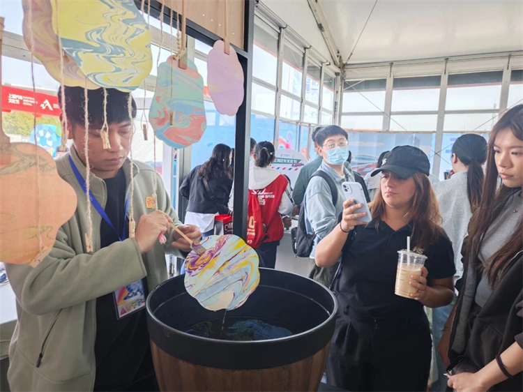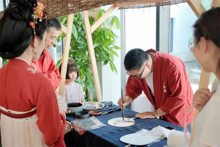 "长绳系日——艺术体验市集“活动由上海韩天衡美术馆邀请专业书法家、篆刻家、画家分区块展示演绎篆刻、书法、绘画等,邀请游客体验非遗漆扇、手工皂制作等各项活动,召集广大传统文化爱好者共聚一堂,分享和体验传统书、画、印创作的乐趣。