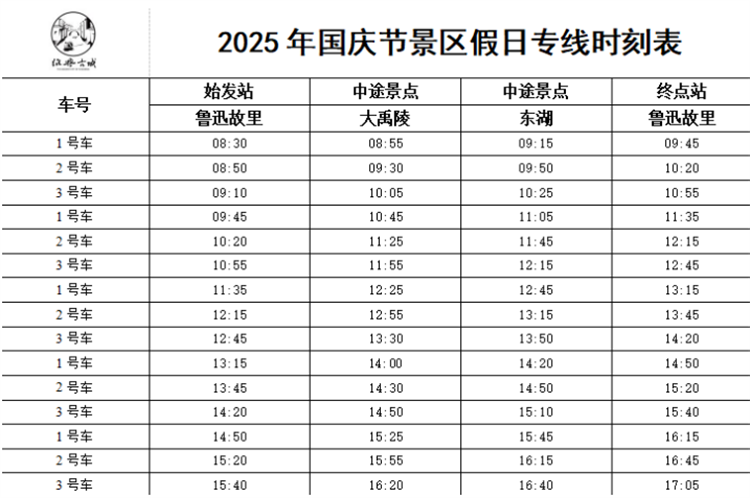 1. 景区假日专线运行时间:2025年10月1日—10月8日.