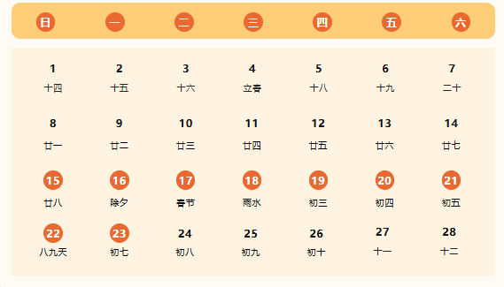 2月17日-2月23日(初一至初七)