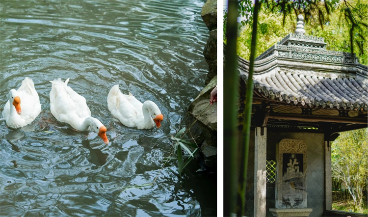 在“鹅池”碑前看白鹅戏水