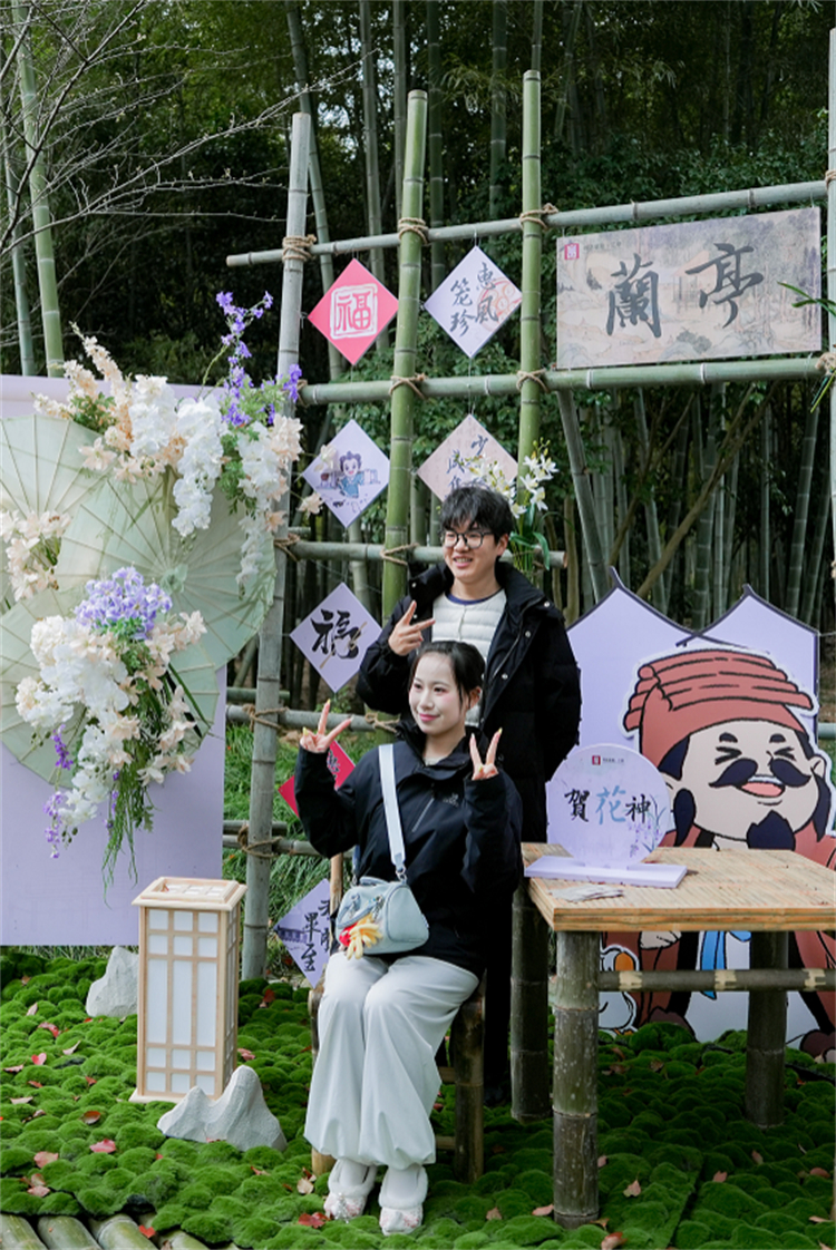 若你有幸在打卡点与“兰花神”相遇,只要能背诵与“兰”、“花”或“春”有关的诗句,便可获得兰花神亲手赠予的兰亭银票(抵值券)一张。