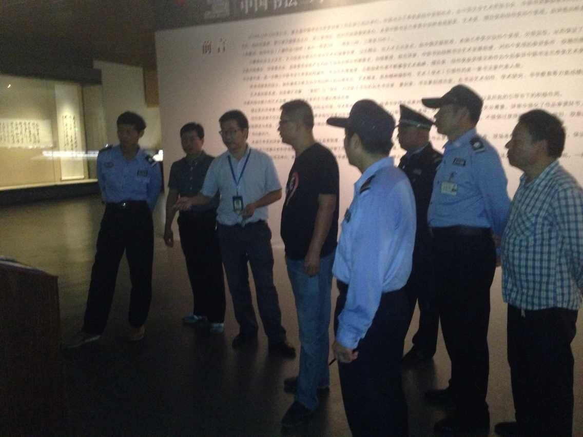 此次培训主要分三块内容,培训老师为弱电施工单位工作人员。他先是对安保人员进行了新建书法博物馆报警系统知识讲解,介绍了该系统的报警原理及基本操作,并教会了安保人员在夜间值班时如何布防、撤防,以及在出现报警情况时如何采取相应的紧急措施。紧接着,他又介绍了博物馆内的监控系统,讲解了监控操作的一些基本方法,比如如何翻看监控、调取监控、拷贝监控录像、白晚班监控上墙等。最后,他还带领着大家去熟悉了一下新建书法博物馆内的手动报警以及红外报警点位。